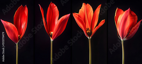 © Dx, Fototapeta premium Red Tulip Blooms A Close-Up Study of Four Stages