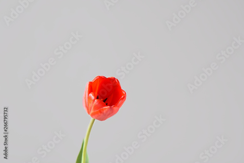 © svdolgov, Obraz premium Red tulip bud on a grey background.
