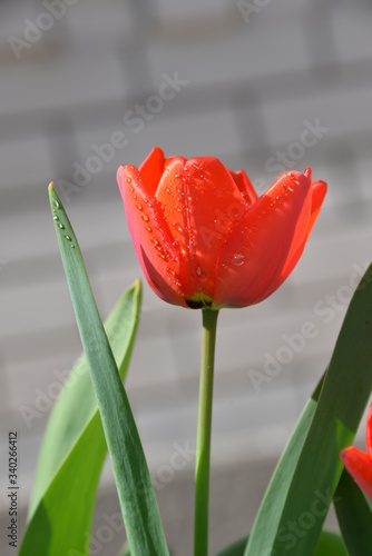 Fototapeta premium red Tulip buds bloom in spring and emit a fragrant smell