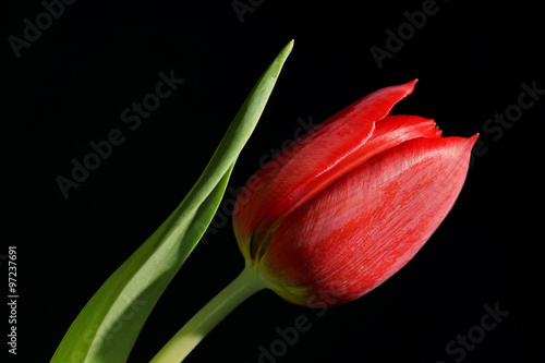 © lavrsen, Naklejka premium red tulip isolated on black background