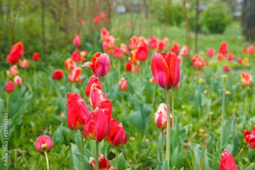Obraz premium Red tulips after the rain