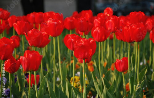 Fototapeta premium red tulips field