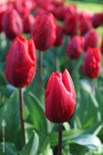 © Sergei Timofeev, Obraz premium Red tulips in Keukenhof park