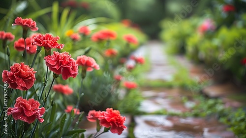Obraz premium red tulips in the garden