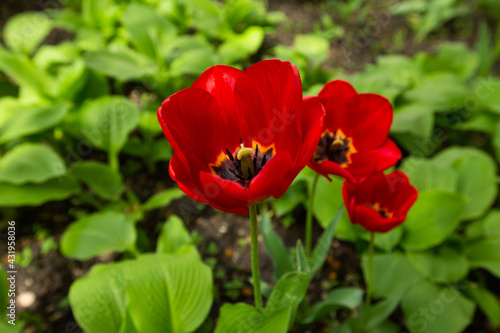 © VikaEmerson, Fototapeta premium red tulips in the garden