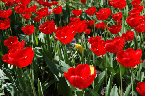 © dragunoff, Fototapeta premium Red tulips on the field.