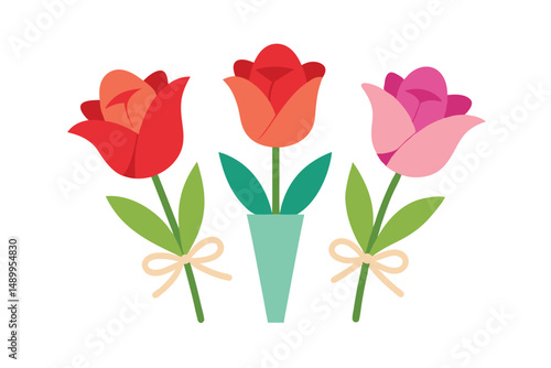 Obraz premium red tulips on white background
