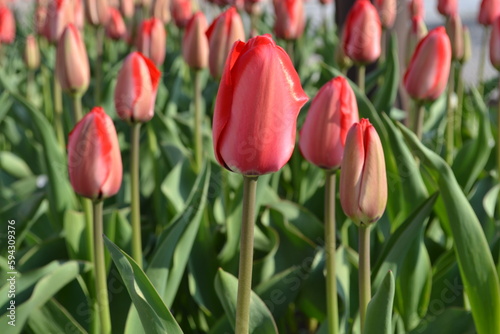 Fototapeta premium red tulips The tulips in spring very colorful flowers.