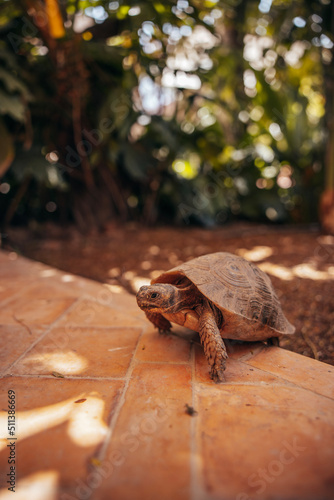© Marcial, Obraz premium red turtle walking in marrakech morocco