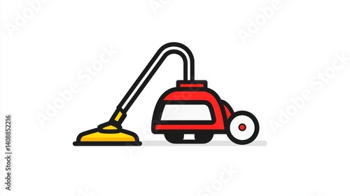 © joo, Fototapeta premium Red vacuum cleaner cleaning, white background, cleaning service illustration
