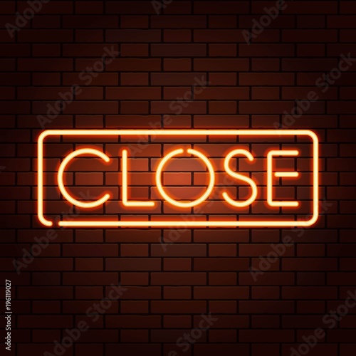 Obraz premium Red vector neon lights uppercase signs CLOSE. Illustration transparent on realistic brick wall.