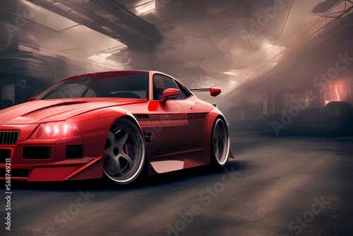 © unalcreative, Obraz premium Red Vector Realistic 3D Car - generative ai
