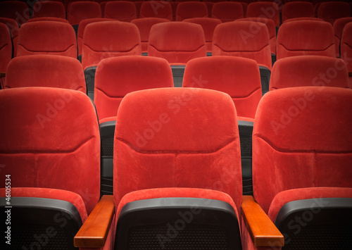 Fototapeta premium Red velvet armchairs in the empty auditorium