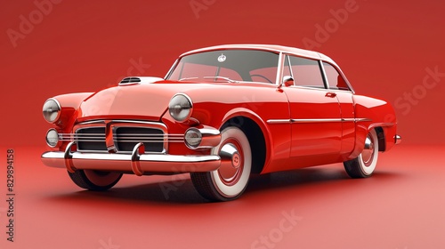 © BNNC TV, Fototapeta premium Red vintage car on red background
