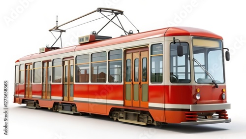 © artisttop, Naklejka premium Red Vintage Tram on White Background
