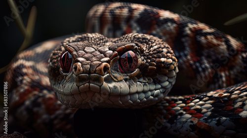 © Islam, Fototapeta premium Red viper snake closeup face