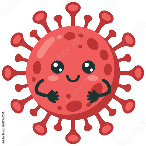 © azzedine, Obraz premium Red virus character with cute face flat cartoon vector illustration on white background