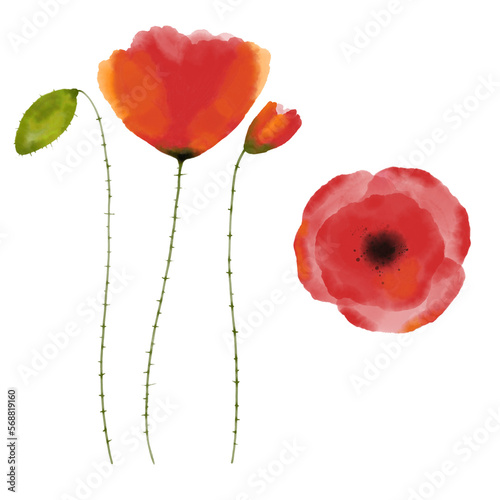 Fototapeta premium Red watercolor poppies, digital painting