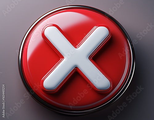 Obraz premium red web button or glossy 3d stop x mark symbol 3d render glossy red button with white x photorealistic highly detailed studio lighting seamless background