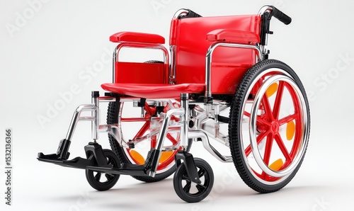 © SaLLy Studio AI, Fototapeta premium Red Wheelchair 3D Render on White Background