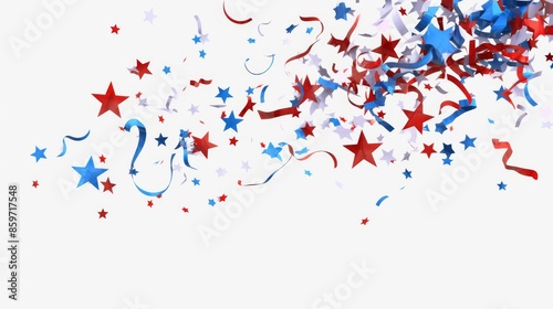 Fototapeta premium Red, White, and Blue Confetti Stars Border on Transparent Background