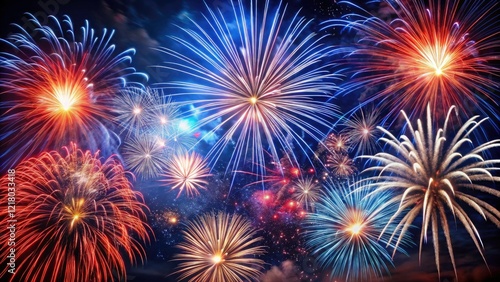 © kansak01, Naklejka premium Red White & Blue Fireworks Photography: 4th of July Celebration Images, American Fireworks Display, Patriotic Fireworks Background