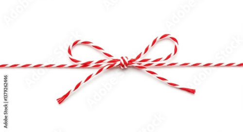 © Muaz, Naklejka premium Red white twine delicate bow isolated white background