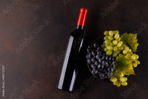 © evgeeenius, Fototapeta premium Red wine bottle and fresh grapes
