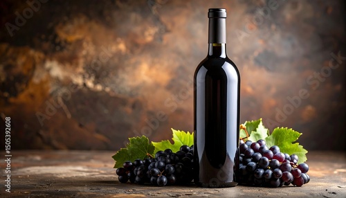 © Ana, Fototapeta premium Red Wine Bottle Grapes.