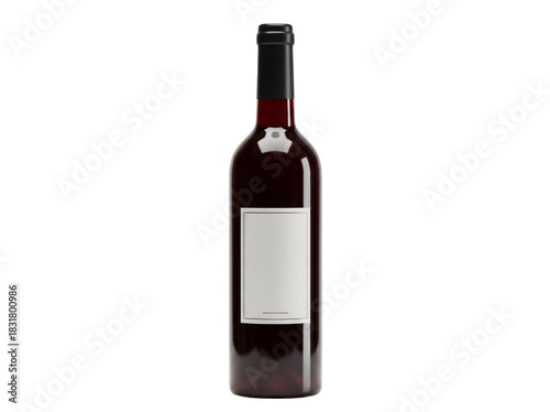 © Ryan, Naklejka premium Red wine bottle isolated PNG on transparent background, dark glass bottle with blank label for branding and product presentation