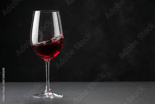 Naklejka premium Red Wine Glass With Liquid Splash on Dark Background
