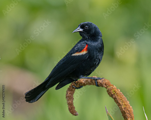© Eli Freidus, Fototapeta premium Red winged blackbird perched in a cattail