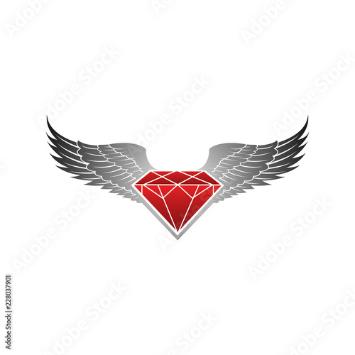 © 7AW, Obraz premium Red winged with grey diamond logo vector illustration