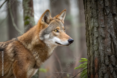 © arabel0305, Fototapeta premium Red wolf in the forest