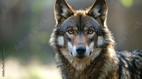 Naklejka premium Red wolf portrait, forest background, wildlife photography, nature conservation