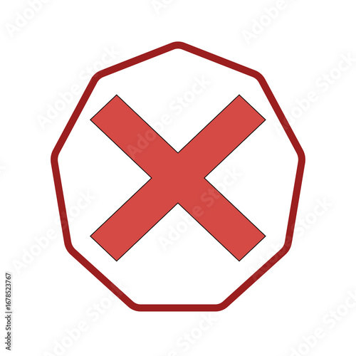 © JPG, PNG STOCK, Obraz premium Red x inside octagonal border symbol