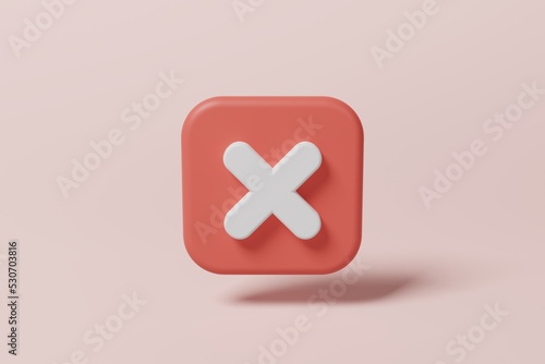 Fototapeta premium Red X mark in a square shape on pink background. Error, Cancel, Ban, Failed concept. 3d rendering