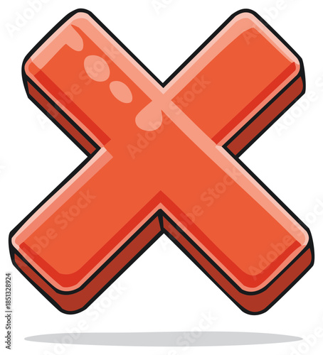 Fototapeta premium Red X mark symbol with shadow on white background.