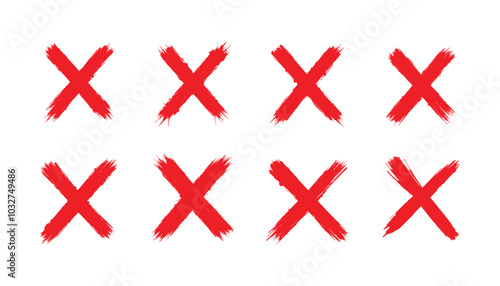 Obraz premium Red x marks set in distressed grunge style on a white background