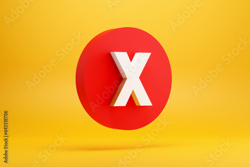 Obraz premium Red x sign or cross mark on a red button on yellow background. Cancel,...