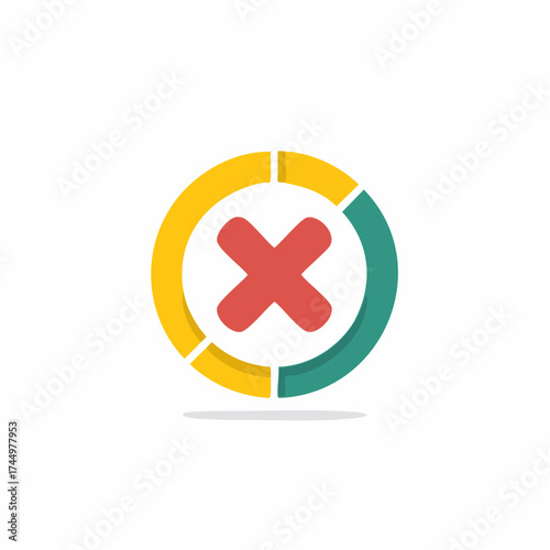 © Oleg, Fototapeta premium Red X symbol inside a segmented yellow and teal ring, representing error, incorrect, or cancellation.