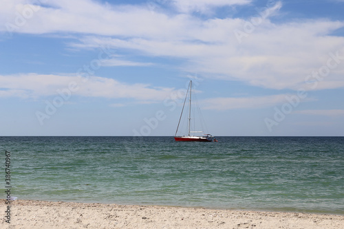 © Tetiana, Obraz premium red yacht in the sea during the vacation