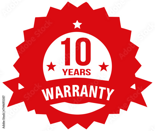 Obraz premium Red 10 years Warranty rubber stamp label, warranty badge