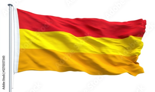 Naklejka premium Red-yellow-gold flag waving, outdoor, clear sky, patriotic symbol, website graphics