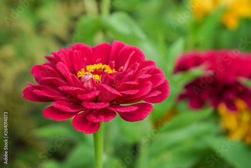 Fototapeta premium Red Zinnia flower on blurred green background.
