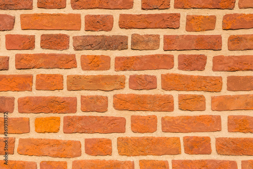Fototapeta premium Reddish brick wall close up for background in natural summer light