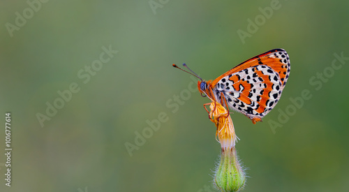 © kenan, Obraz premium reddish medium-sized butterfly with black spots, Melitaea didyma