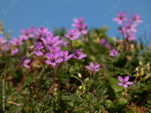 Fototapeta premium Redstem stork's bill (Erodium cicutarium) - tiny purple spring flowers on the...