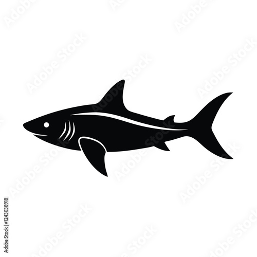 © Nitai Bhowmik, Naklejka premium Redtail Shark Silhouette Vector Art and Black Color Design Illustration