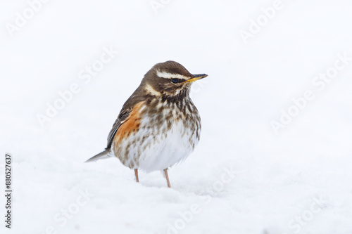 © Henri, Fototapeta premium Redwing (turdus iliacus) standing in the snow in early spring.